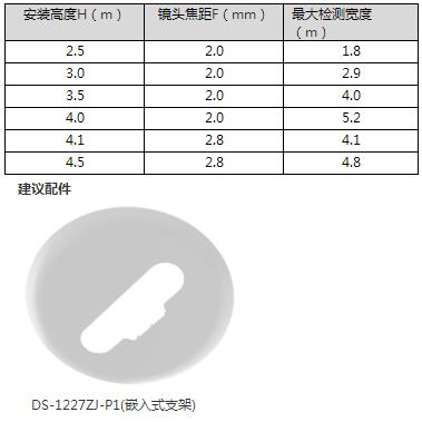 1)根據安裝高度進行鏡頭焦距選型,2.5-4.0 米需選擇2.0mm 型號,4.0-4.5 米需選擇2.8mm 型號.